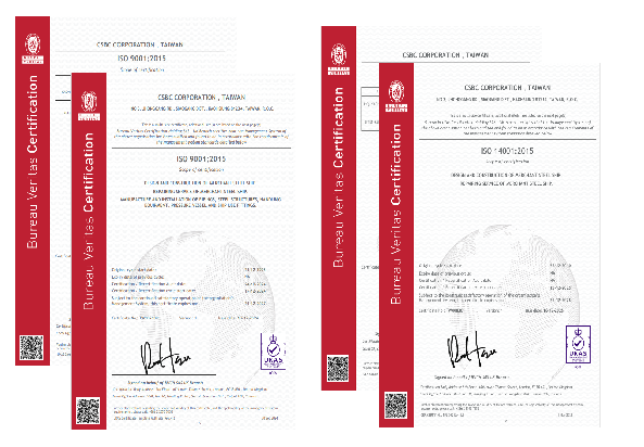 我們擁有 BVC 頒發之造/修船、製機之品質及環安衛管理系統證書、經濟部 工業局頒發之智慧財產管理規範驗證登錄證書以及 ASME 頒發之核能級工 程 N/NA/NPT/NS 證書如下: