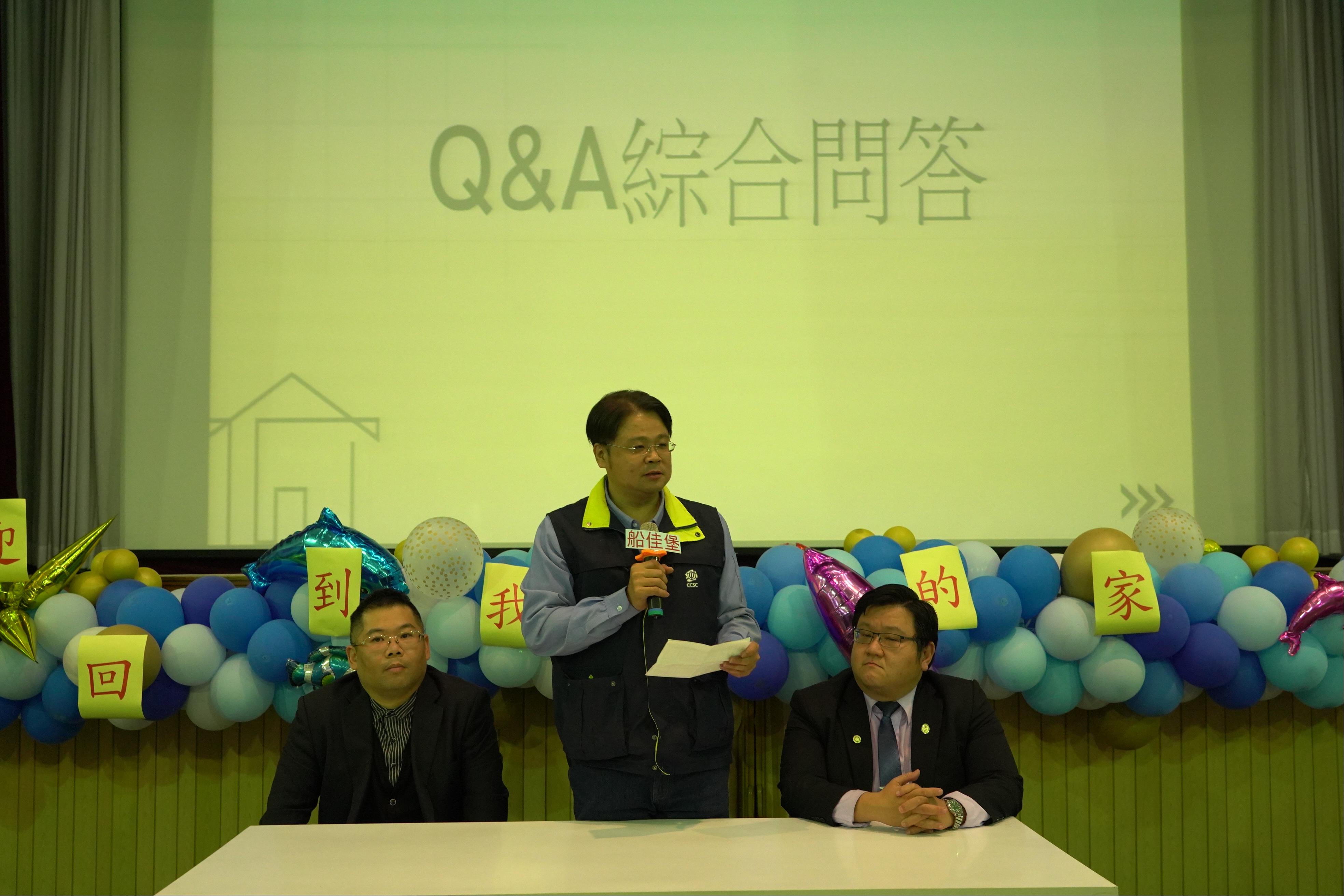 員工說明會開始由台船防蝕總監李旭紳進行簡報說明,該案規劃地下三層、地上十五層,產品為二房、二+一房、三+一房規劃,住宅戶數共規劃156戶,有關員工最關心房屋售價部分,目前暫定空屋價為26~28萬/坪,相較於鄰近建案空屋開價33~35萬/坪,約在8折左右也展現台船公司照顧員工居住需求高度重視,目前規劃含裝潢精裝屋出售,正式包含裝修後售價公開約在112年第二季,冀希達成員工交屋日即為入厝日,減輕員工入住之四大問題。