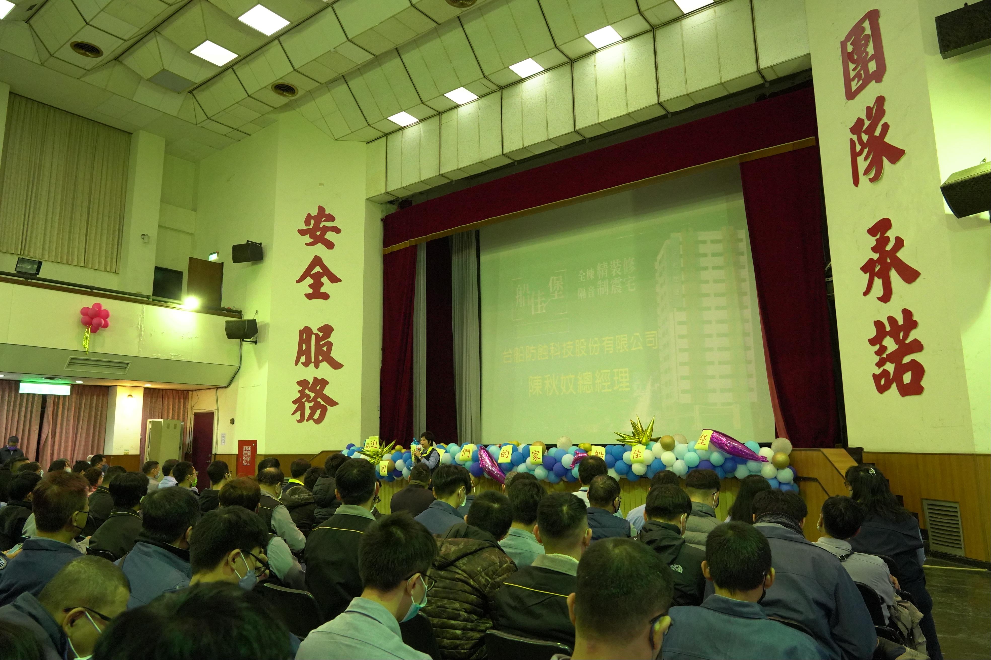 台船(2208-TW)為照顧集團員工特委旗下百分之百持股子公司-台船防蝕科技(股)公司於高雄市小港區興建住宅「船佳堡」,售予台船集團內部員工,藉此吸引人才留任。於29日在台船公司總部大會議廳舉辦員工認購說明會,現場報名員工踴躍並產生爆量之情況,由此可見員工安心成家的心。鄭文隆董事長致詞表示,居住其實是人生中比中較為大筆的支出,因此如何降地員工的付款壓力是本案的精神主軸,在取得本土地之前也嘗試過取得相關國營事業之土地,但受限台船目前已經民營化並未適用相關法規,因此轉由以合建方式取得土地,並對於本案可以順利開工舉辦說明會感到十分欣慰。
