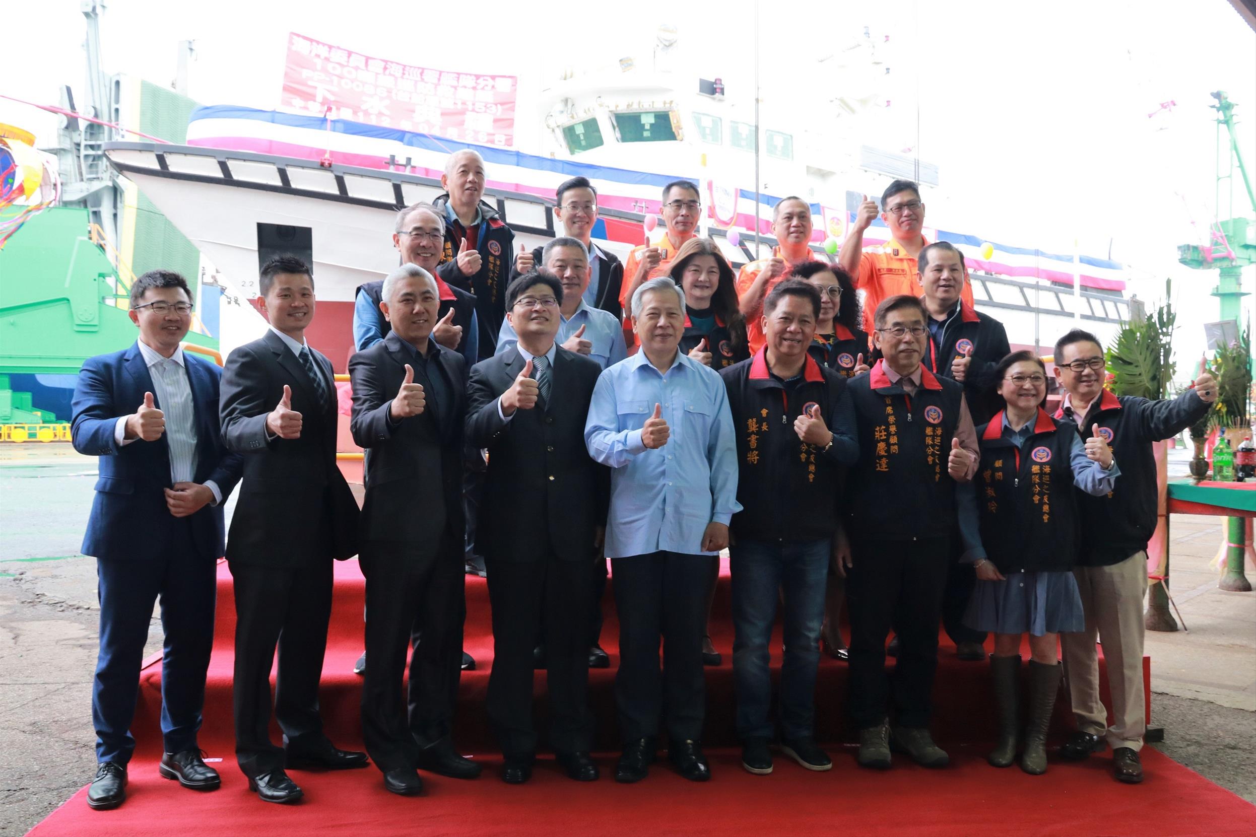 圖1:台船公司承造海洋委員會海巡署艦隊分署100噸級巡防救難艇HNO.1153下水典禮貴賓合影