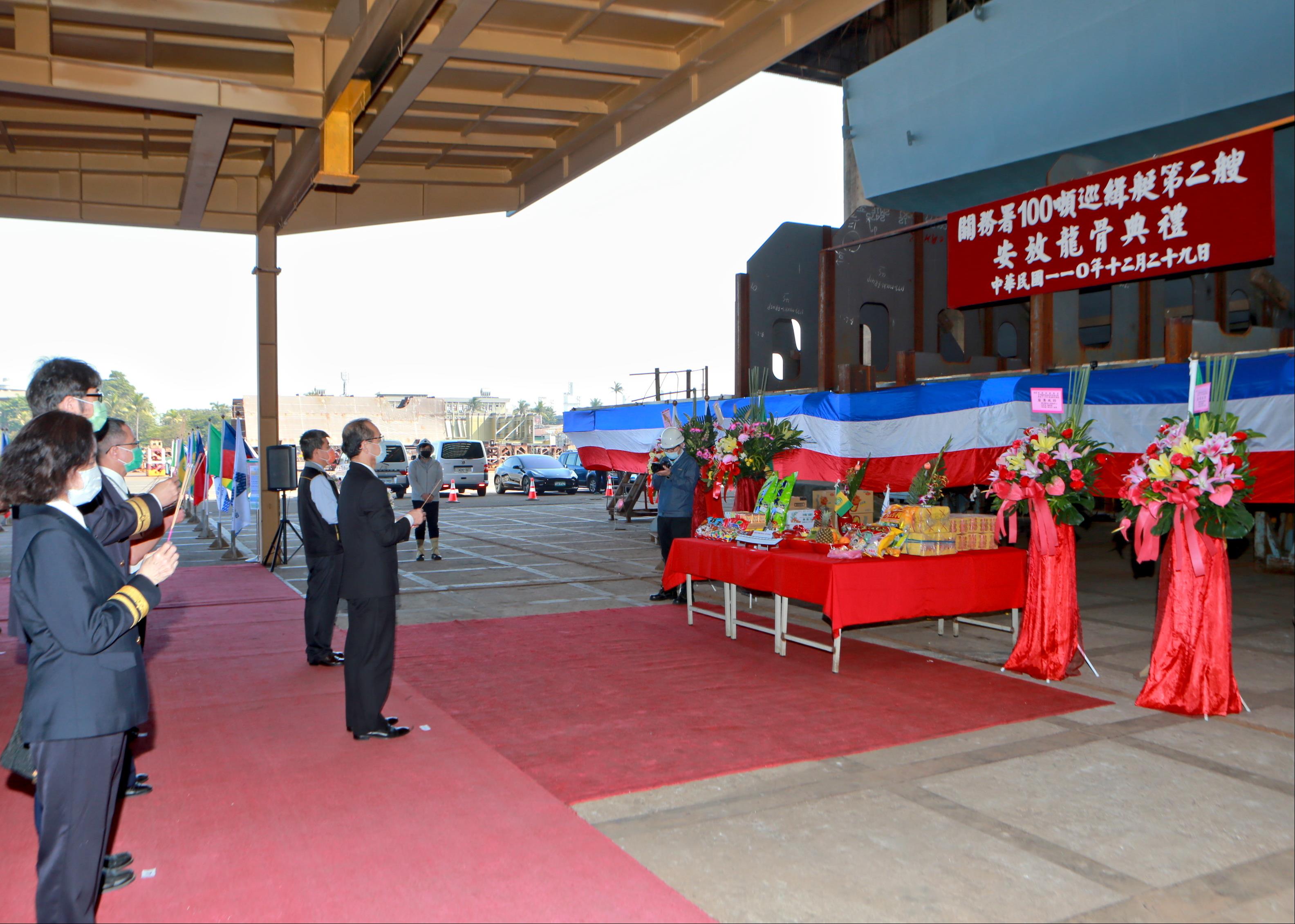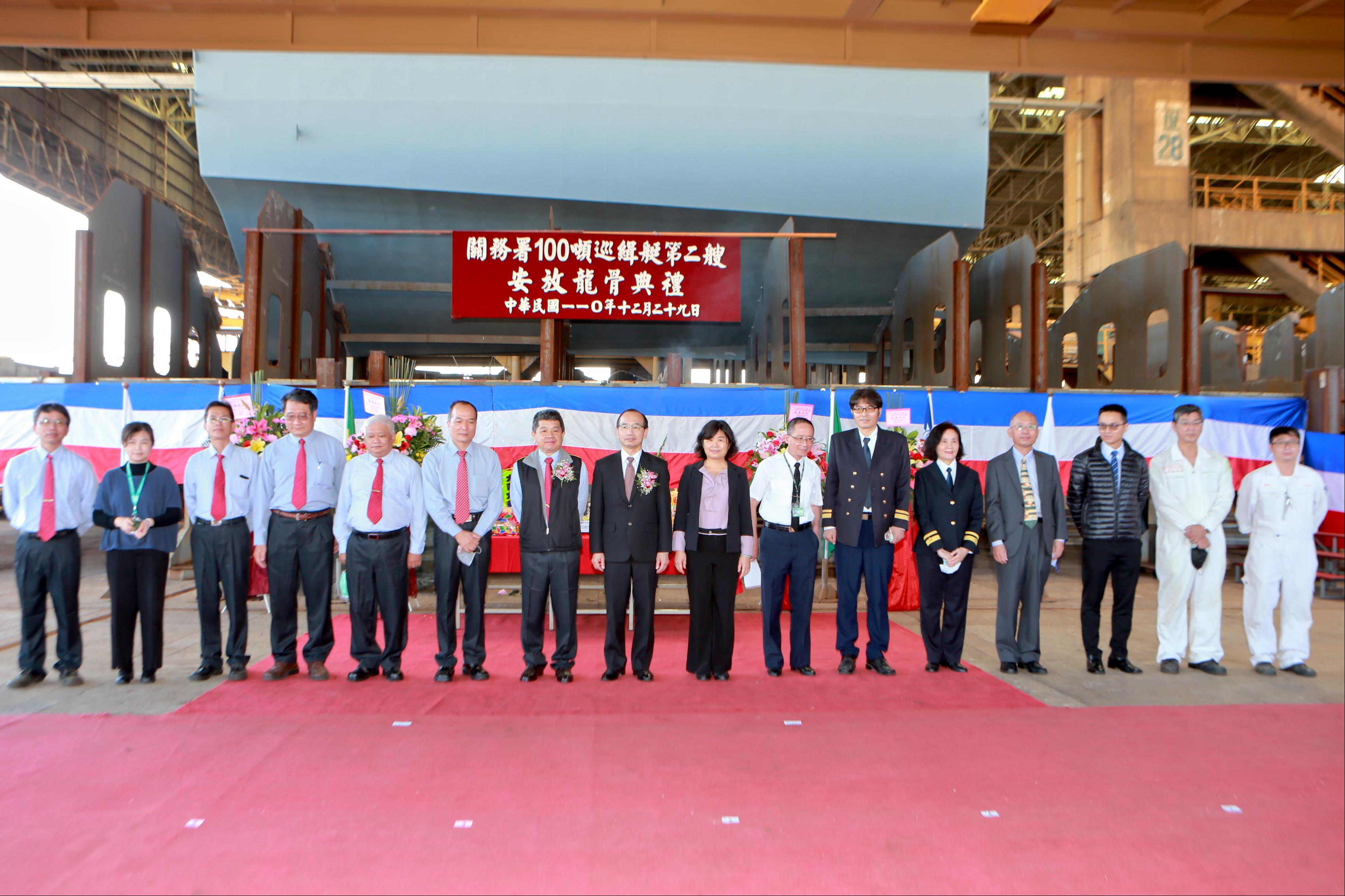 財政部關務署委由台灣國際造船股份有限公司(以下簡稱:台船公司)建造4艘100噸級巡緝艇,第二艘(台船編號HNO.1178),由台船公司副總經理高建一暨關務署高雄關副關務長陳木榮於110年12月29日上午11:00假台船公司高雄廠共同主持安龍典禮。