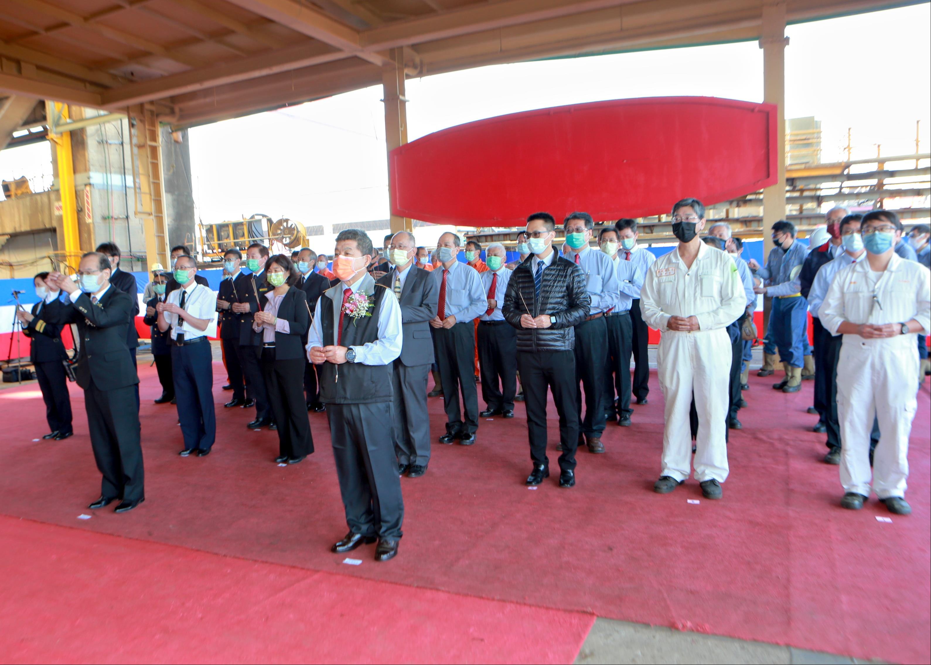 圖說:台船公司承造財政部關務署 100噸級巡緝艇第二艘安龍典禮祈福