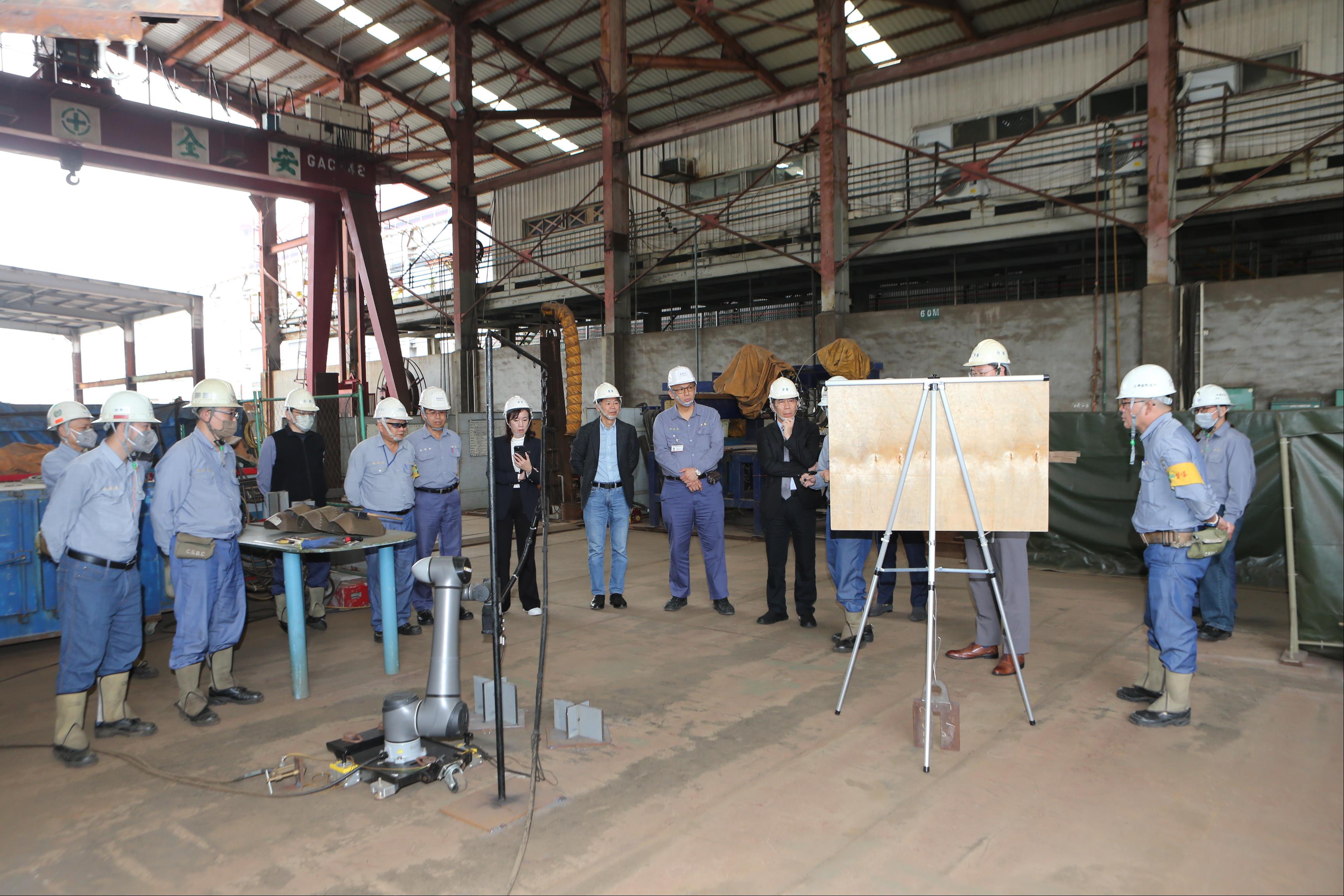 在造船製程方面,台船公司已規劃設立自動化示範產線,導入達明機器人協作手臂應用於船舶銲接構件生產,透過類似流水線的自動化銲接作業,有效提升生產效率。預計明(115)年進入試量產(Pilot Run)階段,再逐步擴大產線,全面提升產能與品質穩定度。