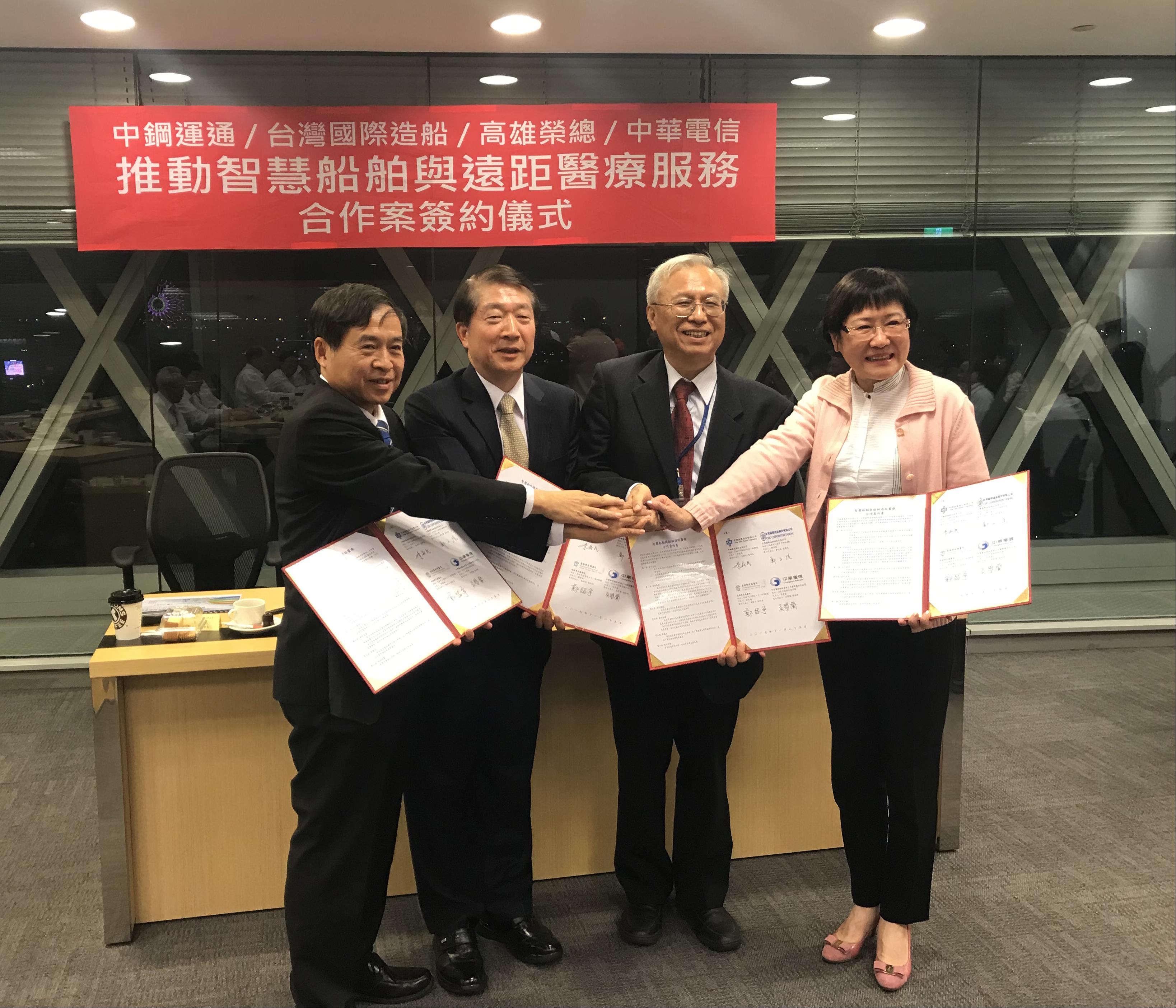 台船公司與中華電信、中鋼運通、高雄榮民總醫院攜手簽訂 「智慧船舶與船舶遠距醫療合作」