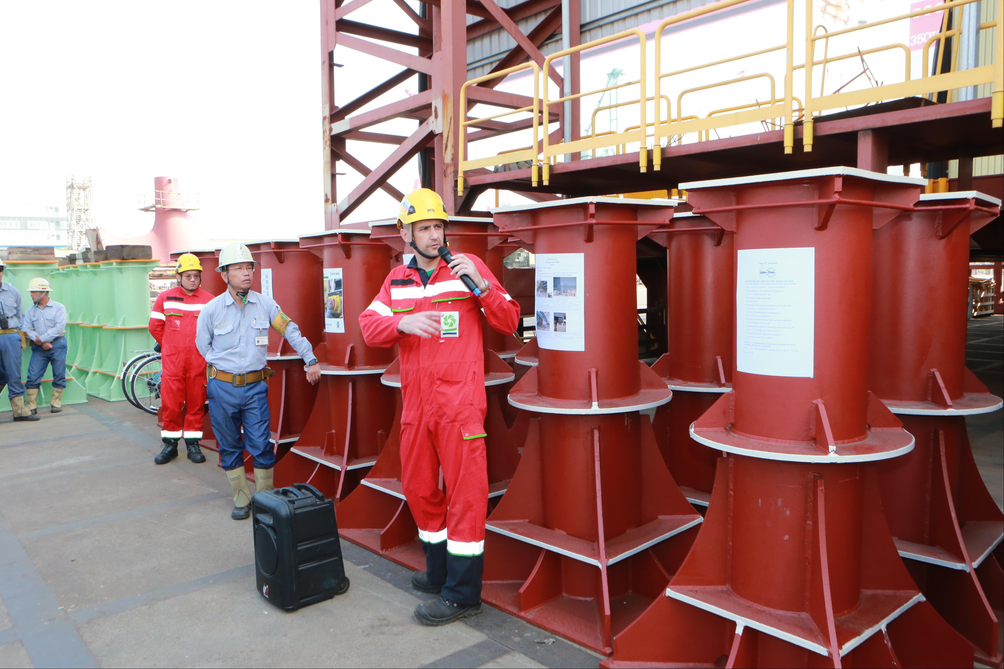 台船公司及台船環海公司配合DEME Offshore全球安全日課題宣導,於(22)日於高雄廠轄下:船體工廠、艤裝工廠、設計處等單位進行施工安全宣導,同時也藉此機會再以相關的工安案例告知同仁施工時務必注意小心施工過程,確保生命財產安全受到保障。台船公司與DEME Offshore透過全球安全日活動,展現與歐洲一流公司同樣重視工安的決心與文化。