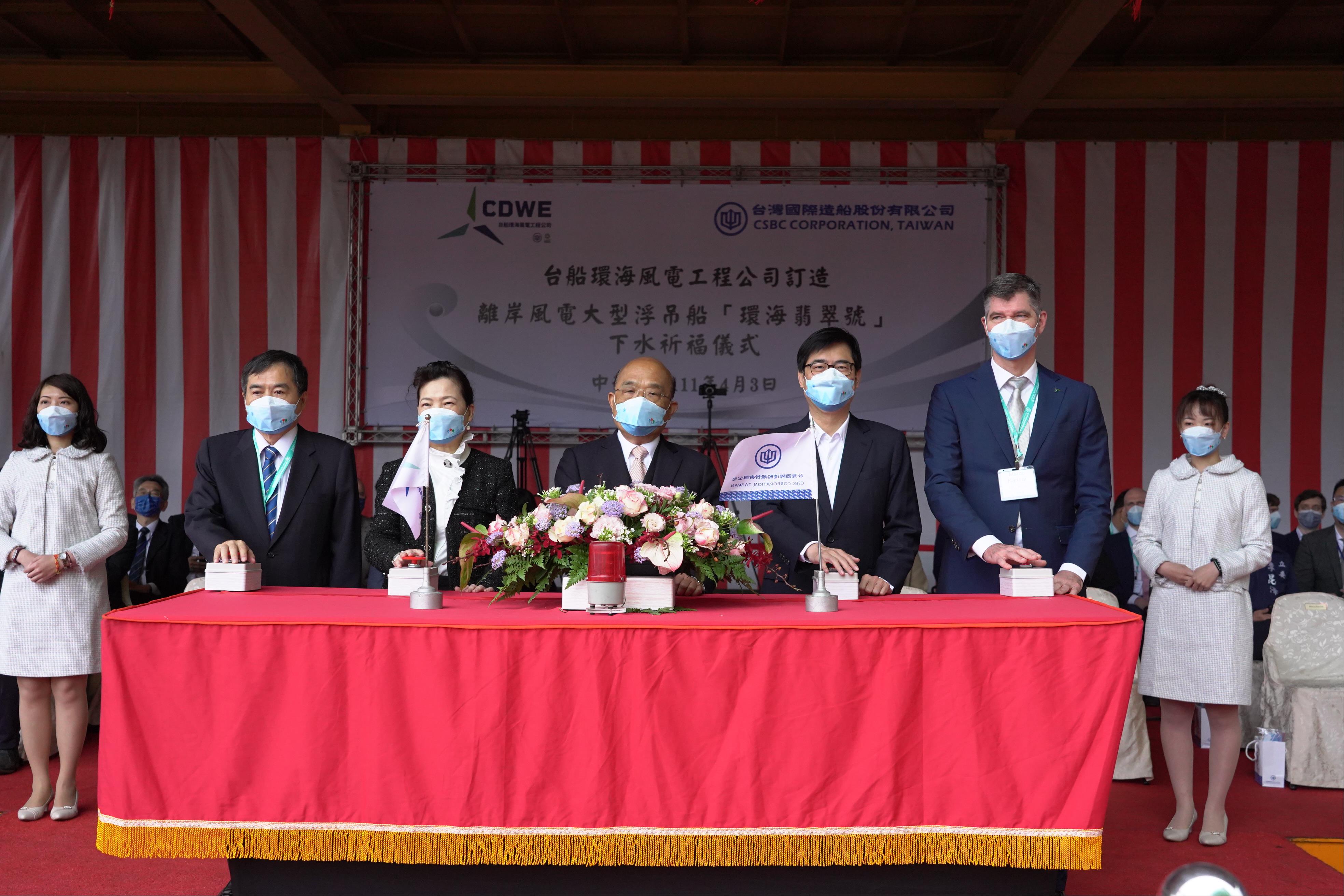 分享至facebook 分享至google+ 分享至twitter 分享至plurk 分享至line 小 中 大 首頁公告訊息台船新聞 台船新聞 111-04-03 台船公司為國內首艘離岸風電大型浮吊船 「環海翡翠輪」舉行下水典禮 發佈單位:管理處公關課 點閱率:3311 台船環海公司委由台灣國際造船股份有限公司(以下稱:台船公司)建造之台灣首艘全迴旋大型浮吊船「環海翡翠輪」,於今(3)日上午在台船公司高雄廠區舉行下水典禮,由台船公司鄭文隆董事長以及該公司轉投資之台船環海離岸風電工程公司執行長Marco Kanaar共同主持。 本次下水典禮邀請行政院蘇貞昌院長、高雄市陳其邁市長、經濟部王美花部長,以及中能離岸風場、海龍離岸風場等台灣離岸風場開發商代表貴賓到場觀禮。這是繼去(2021)年三月底本船安龍以來,第三個重要的建造里程碑,此時再度為台灣造船技術以及我國離岸風電產業史上寫下重要的一頁。 「環海翡翠輪」是於2020年6月30日,由台船環海公司與台船公司簽訂造船合約,並於同年九月正式開工;今日舉行下水儀式,是整個建造過程中相當重要的階段。本艘主力風電工作船預計於2023年初完工,完工後將陸續投入中能及海龍等離岸風場建置工程作業。「環海翡翠輪」是台灣首艘自建的全迴旋大型浮吊船,是國內造船龍頭業者-台船公司,與國際海事工程大廠-DEME Offshore公司,共同響應政府能源轉型政策,所投資興建之高性能、高裝載能量,以及多功能之革命性主力風電工作船。 本船全長216.5 m,寬49 m,深度16.8 m,載貨面積8,200平方公尺,相當於1.3座足球場,可載貨物重最多達6萬噸。其搭載4,000噸等級大型吊車及DP3動態定位系統,在最具經濟效益之條件下,可為離岸風場開發商進行新型水下基礎和新世代大型風機之運輸與安裝作業。 台船公司配合政府能源轉型政策,近年來積極參與離岸風電產業,以協助推動再生能源推廣政策,除了多角化經營新設事業體,轉投資成立台船環海電工程公司,亦積極落實技術本土化政策,希能透過本艘專業風電工作船舶建造作業,將國際造船技術扎根台灣,並可為台船環海帶來更多海事工程商機。此艘風電工作船在台灣進行設計建造,完工後將隸屬於國籍輪,並配置國籍船員,彰顯了台船公司對台灣,甚至是亞太地區離岸風電產業發展的使命感。 台船公司鄭文隆董事長指出:「環海翡翠輪是由國人自行設計與建造,是台灣第一艘,也是目前唯一的一艘浮吊船。除此之外,也是全球第二大型的浮吊船,並且是台船有史以來造價最高的商用船舶。目前全球浮吊船因應各地風場開發,奇貨可居,十分搶手,環海翡翠輪的誕生,將是證明台灣能自建風場的重要指標。在環海翡翠輪正式營運之後,相信台船環海公司可以在未來台灣離岸風場建造作業,甚至於鄰近東南亞國家之離岸風場建造作業,佔有舉足輕重之地位。台船公司為了呼應國家政策,也為了台灣第一艘浮吊船這個榮耀,各級主管及全體員工一定會齊心協力,夙夜匪懈,達成國家交付給台船完成環海翡翠輪建造的重大使命,以扮演好國家離岸風電政策的重要角色。」 台船環海公司執行長Marco Kanaar表示:「很高興環海翡翠輪未來將在台灣海峽上進行水下基礎安裝作業,儘管在投資初期受到疫情的影響,但台船公司以及DEME Offshore公司皆對台灣的離岸風電市場投下信心的一票,共同投入這項投資。台灣的離岸風電產業正如火如荼展開,供應鏈全面拓展,隨著更多投資人進入市場,環海翡翠輪將成為台灣供應鏈發展的基石。然環海翡翠輪的使命並不僅止於此,在未來,環海翡翠輪將繼續前往亞洲其它區域或太平洋鄰近海域進行海上風場建置,成為來自台灣的驕傲,展現台灣對於產業創新、技術提升的承諾,致力對再生能源產業盡最大努力。」 圖說:行政院蘇貞昌院長致詞 圖說:「環海翡翠輪」下水典禮左起:台船公司鄭文隆董事長、經濟部王美花部長、行政院蘇貞昌院長、高雄市陳其邁市長、台船環海離岸風電工程公司執行長Marco Kanaar 圖說:「環海翡翠輪」示意圖 圖說:台船公司鄭文隆董事長致詞 圖說:「環海翡翠輪」下水典禮與會貴賓合照