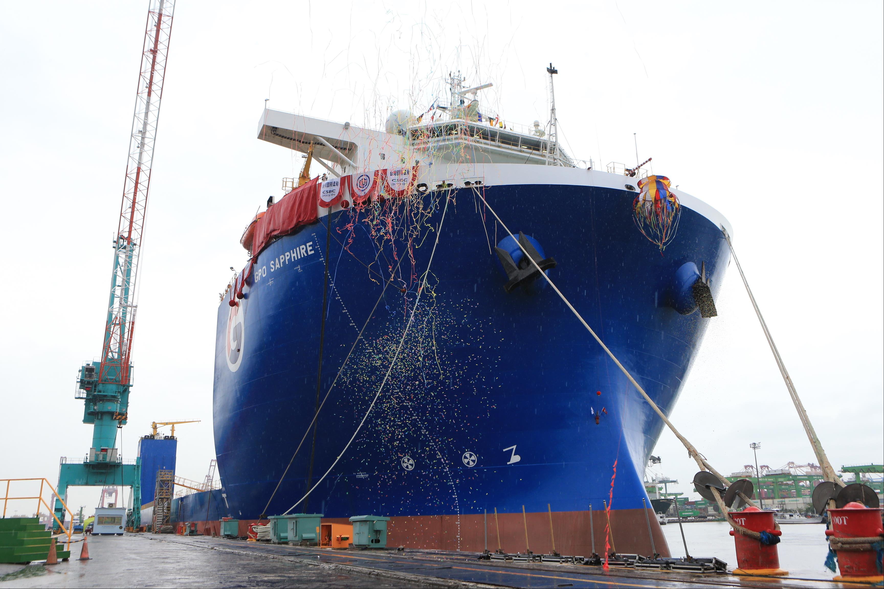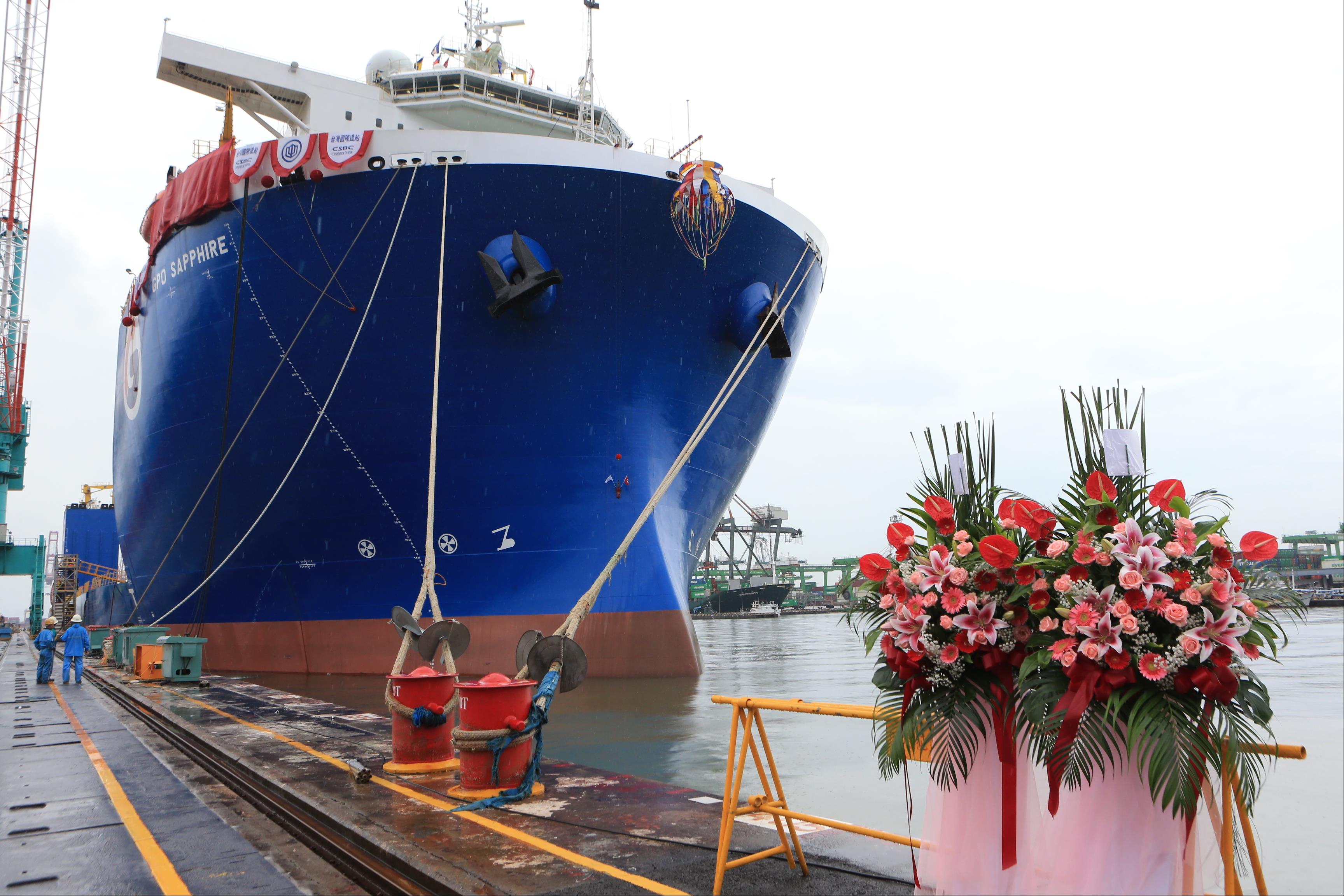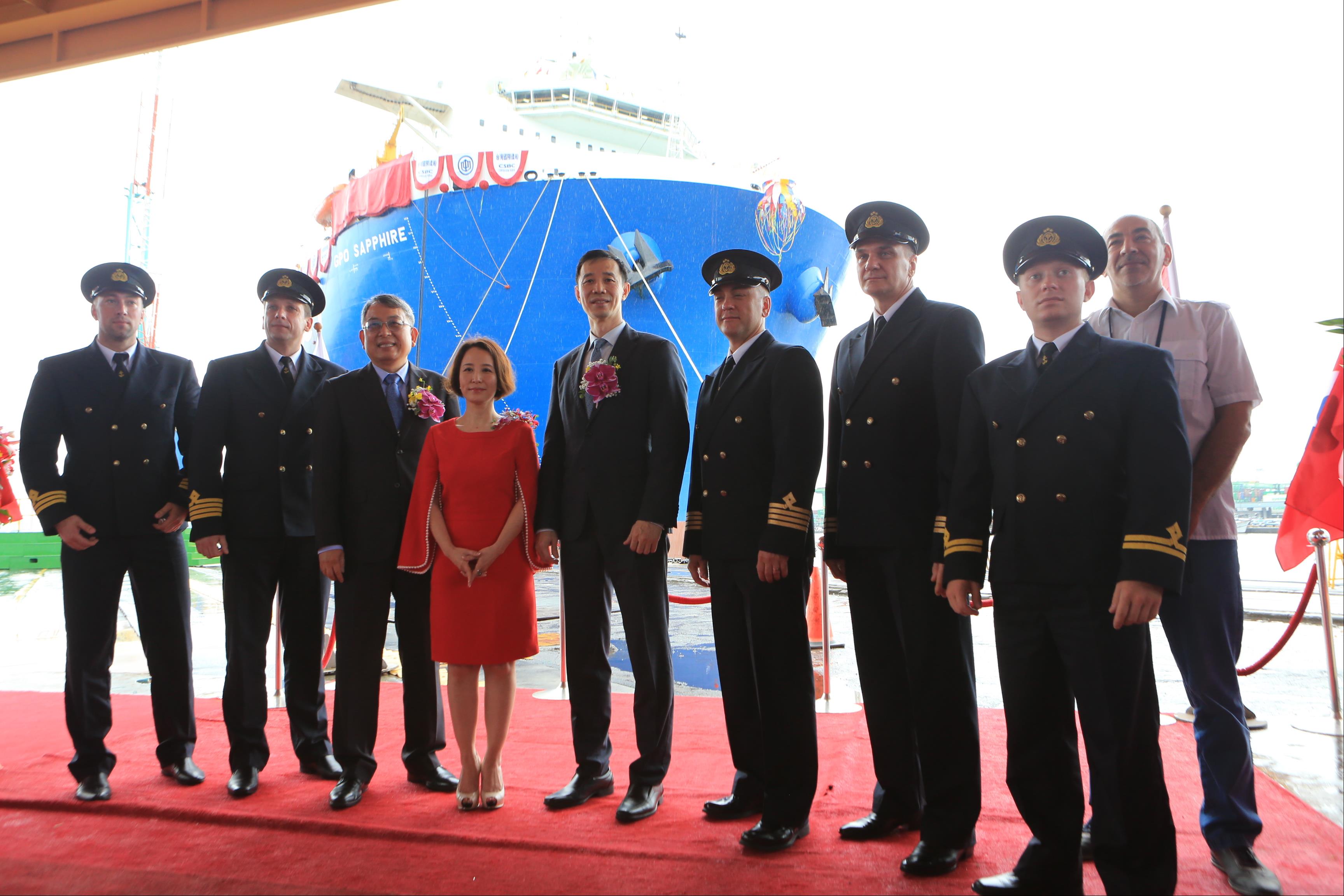 本次命名的是GPO公司所訂造此系列船中的第三艘船—「GPO SAPPHIRE」,此船是全球最先進的65,000載重噸等級潛舉式甲板重貨載運船,船長225公尺,船寬48公尺,載貨甲板長183公尺,最大下潛吃水可達28.8公尺,全船共76個壓載水艙,2座可移動式浮力塔佈置;具多乾舷設計,貨物裝載更具彈性;採雙俥電力推進設計,配合可變螺距螺槳與襟翼舵,最大螺槳出力可達16,000仟瓦;本船採用較為環保的電力推進,並配置壓艙水處理系統,可有效控制、處理海水微生物及沈積物等污染防治,對於海洋環保生態平衡有正面效益。此外,本船還具備DP2動態定位系統及RPS備用推進系統設計,並搭配2具艏錨及1具艉錨,且符合冰區操作規範ICE CLASS-1C之要求,可於ICE CLASS-1C冰區航行,能提供船東更多營運路線的選擇。
