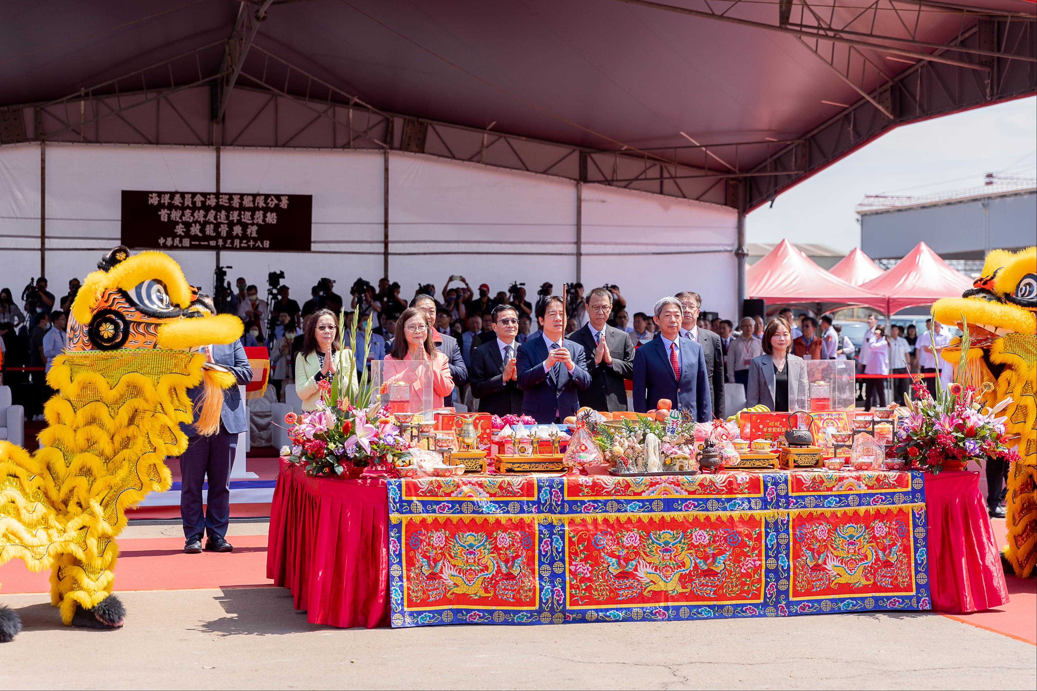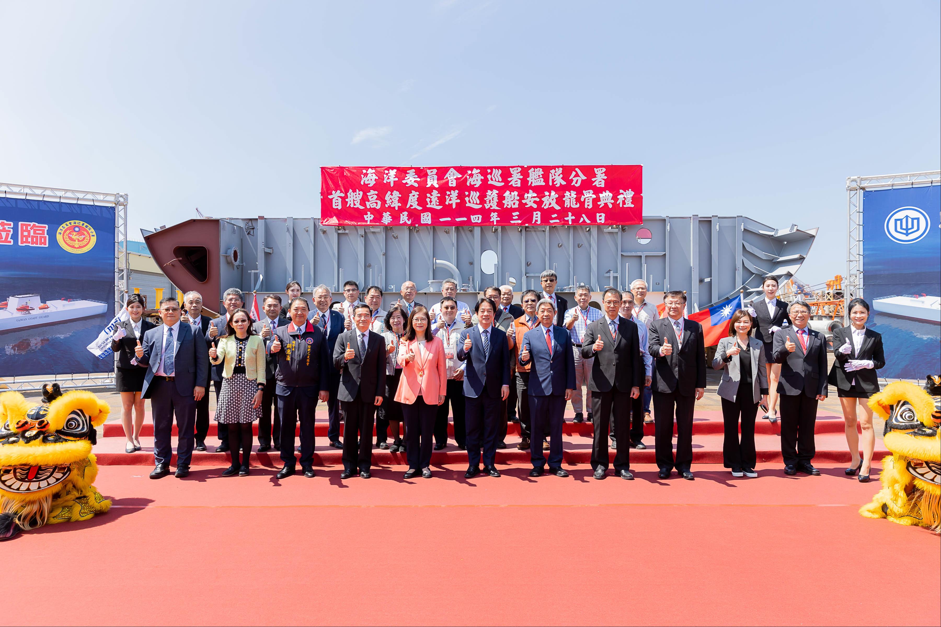 分享至facebook 分享至google+ 分享至twitter 分享至plurk 分享至line 小 中 大 首頁公告訊息台船新聞 台船新聞 114-03-28 台船公司承造海洋委員會海巡署艦隊分署 高緯度遠洋巡護船首艘安放龍骨典禮 發佈單位:管理處公關課 點閱率:1608 台灣國際造船股份有限公司(以下簡稱台船公司,股號:2208)承造海洋委員會海巡署艦隊分署6艘高緯度遠洋巡護船,首艘船安龍典禮於今(28)日上午10時,由總統賴清德先生主持並率同海洋委員會管碧玲主任委員、經濟部國營司胡文中司長、台船公司黃正弘董事長,並在高雄市政府王宏榮副祕書長、海巡署張忠龍署長、海巡之友總會胡惠森總會長,及各界賢達人士見證下,參與台船公司高雄廠「首艘高緯度遠洋巡護船安放龍骨典禮祈福儀式」活動。 新型高緯度遠洋巡護船全船(含上構)採鋼質結構其滿載排水量約5000噸,除大幅提升噸位及續航力,並規劃具海上偵蒐型與運輸補給型兩種船型,海上偵搜型配置無人機(UAV);運輸補給型配置多功能物資貨櫃2個、多功能艇及特勤突擊艇,可配合各項救援及運補任務。 本船執法武器,配置水砲3座,計有高壓噴水槍1支,固定式高壓消防水瞄2支並可兼噴泡沫;另配備中科院研製的20公厘機砲遙控砲塔,並在駕駛艙頂安裝光電指揮儀與駕駛艙內的射控系統聯結,由駕駛艙內進行警告驅離等執法任務。本船長度124公尺、最大船寬16.5公尺、船深8公尺,採油電混合推進系統,高速時,採用2部中速柴油主機驅動,最大船速18節以上,低速時,採用2部電動推進馬達,最大船速5節以上,保持航行時調性運用;船速12節巡航時,續航力達15,000浬,巡弋海域可以滿足達南、北緯至55度內高緯度低溫區域安全航行之能力;船型設計採用節能劍艏及節能舵球,能提升惡劣海況之適航性能與減少碳排。 海巡署「籌建海巡艦艇發展計畫」自107年正式啟動,台船公司總計承攬100噸巡防救難艇15艘(已全數交付)、1000噸巡防艦6艘建造案(已交付3艘)以及4000噸級巡防艦4艘統包採購案(已交付3艘),目前建造進度均符合計畫。未來藉由新建高緯度遠洋巡護船6艘計畫將逐年汰除舊船,將可維護漁權及保育海洋資源,亦強化執行遠洋公海漁業巡護、登臨檢查等公海巡護之執法任務。台船公司配合政府國艦國造政策,也不斷在技術與品質上精進,以多重管道培養造船產業優秀人才,更以承造更多優良性能的海巡艦艇,作為我國國防戰力之最堅強後盾,共同守護國土,以不負國人的期許,更要落實「傳承造船、守護海洋」的使命。 蒞臨貴賓合影 台船公司承造海洋委員會海巡署艦隊分署 高緯度遠洋巡護船首艘安放龍骨典禮 總統賴清德致詞 台船公司黃正弘董事長致詞 總統船型版簽名 海洋委員會管碧玲主任委員致詞 「首艘高緯度遠洋巡護船安放龍骨典禮」上香祈福