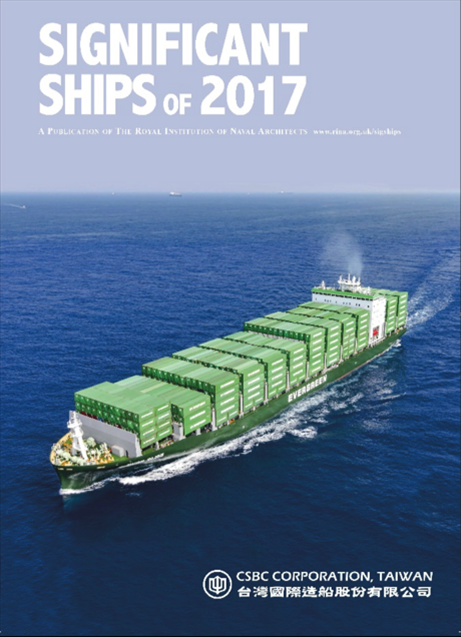 圖說:台船公司建造船舶榮登英國皇家造船工程師學會(RINA)2017年世界名船錄封面